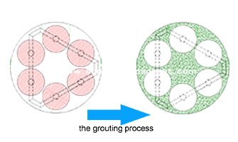 Downward Telltale tubes may be used as grouting pipes for post-testing grouting, and at least two pieces are require to produce differential pressure. Procedures for grouting: 1. Pour clean water from one pre-buried downward telltale tube, when the clean water comes out from another downward telltale tube instead of muddy water, start to grout the gap. 2. The grout fillings cement to water ratio should be 1:0.5 or 1:0.6, and mixed with 7% expansive agent and 1% water reducer. The cement grade sh...